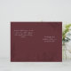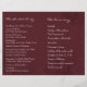 Elégant programme de mariage personnalisé fait dans une riche bordeaux, avec de belles fleurs bordeaux. Le texte gris clair, des deux côtés du programme, est prêt à personnaliser avec toutes vos informations mariages. Plier en deux pour former le programme. Des produits mariages correspondants sont disponibles.