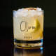 Modernes Whiskey Glas für die Braut zum Feiern mit Brautparty, Junggeselinnen-Abschied, Probe Dinner, Empfang und anderen Hochzeitsveranstaltungen. Personalisieren Sie mit ihrem Namen in einem dünnen Kalligraphieskript und "Bride" in eleganter Serifentypografie.