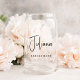 Élevez les toasts de votre fête nuptiale avec notre ensemble unique de 2 verres personnalisés sans tige peut garder des cadeaux pour vos demoiselles d'honneur et domestique d'honneur pour profiter et lever un toast avec à votre fête de fiançailles, douche nuptiale, fête de bachelorette, dîner de répétition et réception de mariage. Ces verres à vin chic ajouteront une touche de plaisir à chaque événement et peuvent être personnalisés avec le nom de votre servante d'honneur, demoiselles d'honneur, mère, soeurs, et plus, dans un script de calligraphie élégant et leur rôle dans la typographie serif élégante.