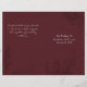 Elegantes Hochzeitsprogramm in einem reichen Bordeaux, mit schönen bordeauxfarbenen Schnörkeln. Der hellgraue Text auf beiden Seiten des Programms ist bereit, mit all Ihren Hochzeitsinformationen zu personalisieren. Falten Sie die Hälfte, um das Programm zu bilden. Die passenden Hochzeitsprodukte stehen zur Verfügung.