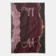 Chic Burgundy Gold Glitzer Agate Custom Monogram B Geschirrtuch