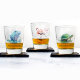 Le design de verre à fusil, mignon et chic, est idéal pour offrir comme cadeau à n'importe quelle occasion comme les anniversaires, les célébrations, la fête de la mère, à des collègues, ou comme faveurs de mariage ou de mariage. Il s'agit d'une collection de trois animaux, un hippo, une tortue et un Flamant rose. Le style aquarelle est spectaculaire.