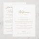 Dieser schicke kalligraphische Begrüßungsbrief aus Gold ist perfekt für eine rustikale Hochzeit. Das einfache und elegante Design zeichnet sich durch klassische und extravagante Schriftzeichen in Gold aus. Personalisieren Sie die Front mit einer Begrüßungsbotschaft für Ihre Gäste und Ihren Namen. Personalisieren Sie den Rücken mit dem Veranstaltungskalender und anderen nützlichen Informationen.