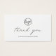 Einfache schwarz-weiße Beilage-Karte mit "danke" in Kalligrafie, zusammen mit Ihrem Firmennamen und Logo. Die Rückseite hat Ihre personalisierte Danksagung / Rabatt, Social Media Icons und Ihr QR Code. Ein minimalistisches Design mit schicker Typografie für eine elegante Touch.