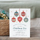 Dieses elegante Urlaubsdesign besticht durch festliche Weihnachtsschmuck in Rot und Blau, umgeben von fallenden goldenen Schneeflocken. Passen Sie Ihre Einladungen für den Weihnachtsabend an die Mitte an, die mit "Heiligabend" in chic blauer Kalligraphie-Schrift verziert sind. Auf den Einladungen umgekehrt ist solide blau. #christmas #holidays #seasonal #invite #invite #invite #ornaments #decorments #baubles #schneeflakes #red #blue #blue #white #chic #Vintag #elegsh #elegsh #watercolor #stationery #festive #festive #christmaseve #dinner #christmasparty #christmaseveparty