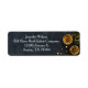 Dieses elegante Weihnachtsadressen-Label aus dem 19. Jahrhundert besticht durch hübschen weißen Text auf einem schönen Urlaubsfoto. Das Foto ist mit goldenen Perlen, Gärten und Kiefernzapfen neben Tannennadeln auf einem schicken schwarzen Hintergrund ausgestattet. Ein erstklassiges Weihnachtskartenzubehör für Unternehmen.