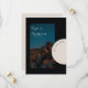 Ein einfacher Kreis mit gekrümmtem Text überschneidet die Details der Hochzeit.