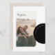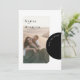 Ein einfacher Kreis mit gekrümmtem Text überschneidet die Details der Hochzeit.