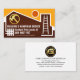 Cover bietet einen kreativen Zuhause-Rahmen mit einem Holzlayout-Set gegen einen hellen Sonnenhimmel. Innerhalb des Kaminraums ist eine Leiter, um den Beginn Ihrer fachkundigen Arbeit zu zeigen. In der Nähe der Dachterrasse ist ein goldenes Hammer-Logo, das Sie benutzen können. Darauf folgen der Firmenname, die Kontaktdaten und eine Slogan-Beschriftung, die Sie ändern können. Auf der Rückseite, in einem weißen Cover, oben ist ein goldenes Landschaftslogo, das Sie benutzen können. Darauf folgen der Firmenname, die Kontaktdaten und eine Slogan-Beschriftungsoption für Sie, um Ihr Unternehmen zu veröffentlichen. Eine großartige Karte für Gebäude-, Handyman- und Bauthemen. #handyman #homerepair #tratragner #handymantools #construction #builder #remodeling #renovation #building #buildingtor #generaltratratratragnant #homerepair #dhofer #roofer #Gebäude #roofing #zazzlemade