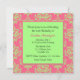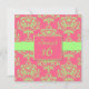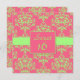 Schöne Geburtstagsfeier in rosa und grünem Damast-Muster. Die Vorderseite der Karte hat die Grafik einer Plakette, die sagt Sweet 16, in grünem Text, und kann personalisiert sein, um zu lesen, alles, was Sie gewollt. Der grüne Textbereich auf der Rückseite der Einladung ist mit schwarzem und rosafarbenem Text versehen, der für den besonderen Geburtstag Ihrer Tochter personalisiert werden kann.