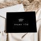 Ce carte de remerciements chic de graduation casquette noir foncé est parfait pour une fête moderne de graduation. Le design sobre et sombre présente une typographie classique sophistiquée en noir et blanc avec un casquette d'aquarelle noir et or. Laissez le dos vide pour écrire un message personnel, ou faites imprimer un message de remerciement et une mise à jour au dos.