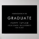 Dieses schicke, dunkle schwarze Gratulationen Graduiertenposter ist perfekt für eine moderne Abschlussfeier. Das einfache, dunkle Design besticht durch klassisch minimalistische Schwarz-Weiß-Typografie und ein stilvolles, elegantes Ambiente. Anpassbar in jeder Farbe. Personalisieren Sie das Abschluss-Zeichen mit dem Namen des Absolventen, Schule und Jahr.