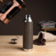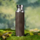 Insulated Water Flasche mit einem schicken dunkelbraunen Imitat Leder-Design mit einer rechteckigen Form (optional) und Ihre benutzerdefinierte Monogramm. Toll als persönliches Geschenk für ihn.