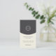 Diese Visitenkarte ist modern, minimalistisch und in zwei Farbtönen gestaltet. Die obere, dunkelkohlegraue Ecke kombiniert eine weiche Creme im unteren Teil. Ein kreisförmiges Monogramm-Logo mit einer dünnen doppelten Grenze steht an erster Stelle, während eine schlanke Typografie und weiße Flächen eine berufliche und elegante Ästhetik schaffen, die sich perfekt für eine raffinierte und kreative Identität eignet.
