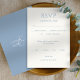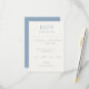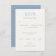 Belle carte de réponse RSVP à mariage plat bleu et ivoire poussiéreux avec un couple monogramme à l'arrière. Ce modèle dispose d'un ensemble contemporain de polices de caractères et d'une sélection facile de repas d'hôtes personnalisables. L'article fait partie d'une collection de mariages qui comprend une sélection artisanale d'articles fixes pour correspondre.