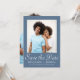 Chic Dusty Blue Script Foto Wedding Save the Date