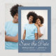 Diese schicke Hochzeit speichern Sie das Datum Ankündigung Karte verfügt über zwei Fotos und elegante weiße Save the Date Kalligraphie-Skript auf einem staubigen blauen Hintergrund. Die Rückseite ist ein volles Foto. Gelassen Gäste wissen, dass Sie sie zu Ihrer bevorstehenden Hochzeit mit dieser einfachen minimalistischen ein Foto Save the Date Karte einladen werden (klassische koordinierende Hochzeitseinladungen können zu einem späteren Zeitpunkt verschickt werden, und können separat erworben werden).