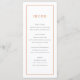Une délicate palette de couleurs roses poussiéreuses crée une atmosphère romantique chic à ces menus mariages vintages et modernes. L'avant présente une typographie moderne dans une disposition boutonnée tandis que le dos se propage avec des fleurs florales ditsy. Customisez à votre événement et jumelez-vous avec les pièces de la suite de coordination.