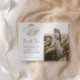 Die Hochzeitskarte mit dem blühenden Foto in Rosa ist der perfekte Weg, um all Ihren Hochzeitsgästen Anerkennung zu zollen. Personalisieren Sie mit Ihrem eigenen Foto und Text. Besuchen Sie meine staubige Rose Eukalyptus Hochzeitskollektion, um alle koordinierenden Gegenstände zu sehen.