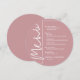 Chic Dusty Rose Round Menükarte