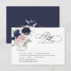 Vervollständigen Sie Ihre Hochzeitssuite mit unserer eleganten Blush Navy Blue Wedding RSVP Karte. Diese Karte zeigt romantische moderne Typografie und Kalligraphie-Schrift mit trendigem Aquarell-Blumengrün und zarten Blume der Rose. Diese luxuriöse und einzigartige RSVP-Karte ist perfekt für jede Jahreszeit und verleiht Ihrer Hochzeit eine Touch klassischer Eleganz. Es ist eine preisgünstige und wunderschöne Option, die Ihre Hochzeitseinladungen nahtlos ergänzt und so einen einheitlichen und unvergesslichen Look garantiert.