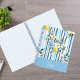 Stilvolles und anpassbares Spiralnotebook mit einem lebhaften blau-weiß gestreiften Design mit zarter gelb-weißer Blume, Zitronenakzenten und personalisiertem Text. Ideal, um Noten, Ideen oder Pläne mit einer Touch von Eleganz zu verbinden.
