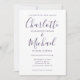 Diese elegante Hochzeitseinladung mit ihren charakteristischen Stilnamen kann personalisiert werden mit Ihrem Hochzeitsinformations-Set in schicker lila Typografie und Ihrem gewählten Foto auf der Rückseite. Entwickelt von Thisisnotme©
