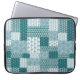 Ein schicker Laptop-Schläfchen mit einem ethnisch geprägten Imitat-Patchwork-Muster in Aquamarin und weiß. Als Teil der Posh & Painterly 'Boho Bazaar' Kollektion kann dieses Muster leicht angepasst werden, indem die Richtung oder der Maßstab der Musterfliese für ein völlig anderes Aussehen geändert werden.