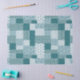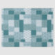 Ein Stück schicken Tissue, mit einem ethnisch geprägten Imitat Patchwork-Muster in Aquamarin und weiß. Als Teil der Posh & Painterly 'Boho Bazaar' Kollektion kann dieses Muster leicht angepasst werden, indem die Richtung oder der Maßstab der Musterfliese für ein völlig anderes Aussehen geändert werden.