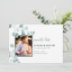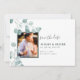 Mit diesen eleganten "Save the Date Cards", die ein Aquarellbild Eukalyptus und einen Platzhalter für Ihr Foto enthalten, kündigen Sie Ihren besonderen Tag an. Andere Koordinierungsgegenstände in unserer Silver Dollar Eukalyptus Wedding Stationery Suite.