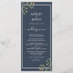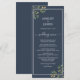 Elegantes Hochzeitsmenü mit eucalyptus foliage botanisches Design auf einem schicken marineblauen Hintergrund. Fügen Sie einfach Ihre Hochzeitsmenüdetails hinzu. Wenn Sie Hilfe oder passende Produkte benötigen, kontaktieren Sie uns bitte über unseren Shop. Wir helfen Ihnen gerne, Ihre Hochzeit zum schönsten Tag zu machen!