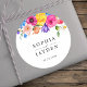 Elegante schicke, farbenfrohe Wildblumen Hochzeitsaufkleber mit schönen Blume und Blätter. Fügen Sie Ihrem Hochzeitsgeschirr eine personalisierte Touch mit diesem mit Monogramm, farbenfrohen Wildblumen Hochzeitsklassiker runder Aufkleber hinzu. Mit einer lebhaften Auswahl an rosa, gelben, orangen und lila Wildblumen strahlt dieses Design Freude, Romantik und natürliche Schönheit aus. Das elegante Monogramm-Detail fügt ein ausgeklügeltes und individuelles Element hinzu, das sich perfekt zum Abdichten von Umschlägen, Dekorieren von Gastgeschenke Hochzeiten oder Hinzufügen eines stilvollen blüh zu Geschenkverpackungen eignet. Ideal für Böhmen, Gärten, rustikale Hochzeiten oder Hochzeiten im Freien, ist dieser Blumenaufkleber ein charmanter und unvergesslicher Sake für Ihren besonderen Tag.