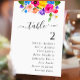 Elegante, farbenfrohe Wildblumen mit Sitzkarten mit schönen Blume und Blätter. Helfen Sie Ihren Gästen mit dieser farbenfrohen Hochzeitskarte, ihre Sitzplätze stilvoll zu finden. Dieses Design mit einer lebhaften Mischung aus rosa, gelben, orangefarbenen und lila Wildblumen strahlt natürliche Schönheit, Wärme und Romantik aus. Die elegante Typografie sorgt für ein übersichtliches und organisiertes Display und macht es zu einem funktionalen und dekorativen Stück für Ihren Empfang. Diese Karte eignet sich ideal für Hochzeiten im Freien, im Böhmen, im Garten, in der Natur oder im Freien und sorgt für eine frische und lebendige Touch in Ihrem Hochzeitsdekor.