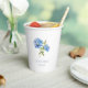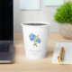 Chic und elegant blaue hydrangea Papiertassen zeichnen sich durch ein wunderschönes Blumendesign aus, zusammen mit Ihren Namen, Daten und optionalem Text in staubblauem Blau.