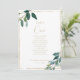 Dieses schicke Blatt-Tischnummer-1-Sitzdiagramm eignet sich perfekt für eine rustikale Hochzeit. Das Design ist mit einem grünen Eukalyptus-Blattwerk versehen, das einen geometrischen Rahmen aus Gold schmückt. Die Karte druckt recto verso (beidseitig)