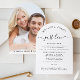 Elegantes, bogenförmiges Elopement oder private Hochzeitsankündigung und lässige Empfang-Einladung mit "Nothing Extravagant Just Liebe" in einer Mischung aus einfacher Schrift und einem schicken Drehbuch mit Swashes, Ihrer personalisierten Heiratsankündigung und Empfang-Einladung und Ihren Namen in einem signaturähnlichen Drehbuch. Auf der Rückseite fügen Sie Ihr Foto und Ihre Vornamen und Hochzeit oder Empfang Daten durch ein Herz verbunden.