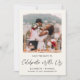 Chic helle Creme-Einführung oder private Hochzeitsankündigung und Empfang Save the Date. Die Vorderseite zeigt Ihr Foto, "Feiern Sie mit uns" in einem modernen Skript, und Ihre Namen, Empfang Datum und Ort in einfacher Typografie. Auf der Rückseite personalisieren Sie Ihre Ankündigung Datum freihalten und fügen Sie Ihre verheirateten Namen in ein signaturartiges Skript ein.