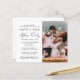 Eine preisgünstige, moderne Einführung oder "wir binden den Knoten" private Hochzeitsankündigung und Empfang-Einladung mit Ihrem Foto und "Happily Ever After Party" in einer Mischung aus einfacher Typografie und einer schicken Schrift. Personalisieren Sie Ihre Party- oder Empfang-Daten und fügen Sie Ihre Namen in ein signaturartiges Skript ein. Dieses halbglänzende Haushaltspapier ist gewichtsähnlich wie Foto. Es ist auch eine größere 12x18-Kartenversion verfügbar (für den Link die Meldung).
