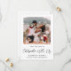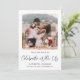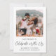 Chic-Einführung oder private Hochzeitsankündigung und Hochzeitsempfang Save the Date. Die Vorderseite zeigt Ihr Foto "Feiern Sie mit uns" in einem modernen Drehbuch, und Ihre Vornamen, Empfang Datum und Ort in einfacher Typografie. Auf der Rückseite personalisieren Sie Ihre Ankündigung Datum freihalten und fügen Sie Ihre verheirateten Namen in ein signaturartiges Skript ein.
