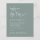 Eine preisgünstige und grüne Brauereiempfehlung mit der Einladung "Happily Ever After Party" in einem schicken, weißen Drehbuch, der Einladung in klassisch weißer Serifentypografie und Ihren Namen in einem signaturähnlichen weißen Schrift. Auf der Rückseite, fügen Sie Ihr Foto und geben Sie Ihre Website Adresse Hochzeit, um einen QR-Code, dass Ihre Gäste können scannen, um UAWG online und erhalten Sie zusätzliche Details.