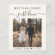 Haushaltsfreundliche helle Creme-Einführung oder private Hochzeitsankündigung und lässige Empfang-Einladung, die Ihr Foto, "Nothing Extravagant Just Liebe" in einfachen Typografie und ein elegantes Drehbuch mit Swashes, und Ihre Namen und Hochzeit oder Empfang Datum. Auf der Rückseite, geben Sie Ihre Hochzeitwebsite-Adresse, um einen QR-Code für Ihre Gäste zu scannen, um UAWG online zu erhalten Hochzeitsdetails und fügen Sie Ihre Namen in einem signaturähnlichen Skript. Dieses halbglänzende Haushaltspapier ist gewichtsähnlich wie Foto. Es ist auch eine größere 12x18-Kartenversion verfügbar (für den Link die Meldung).