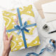 Chic gelb und grau-Damast-Kat-Stammmuster Geschenkpapier
