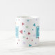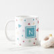 Moderne und schicke klassische Tasse mit geometrischen Formen von Dreiecken und Wirbel in Pastellgrün, Gelb und Rot. Personalisieren Sie es mit Ihren Initialen
