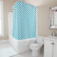 Aquamarine blaue Flecken auf weißem Hintergrund.Dieser schicke und fröhliche Duschvorhang hat eine weiße Grenze.