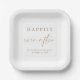Chic-Papierteller für Ihre Hochzeitsfeier, Probe-Dinner, Verlobungsfeier und andere Hochzeitsfeiern mit "Happily Ever After" in einer Mischung aus eleganter Goldserf-Typografie und einem stilvollen modernen Goldskript, Ihren Vornamen und Ihrem Hochzeitsdatum.