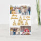 Eine schicke goldene Weihnachtskarte mit Ihrer Foto-Kollektion rund um einen schönen Baum aus goldenen Schneeflocken mit Fröhlicher Weihnachten und Happy New Year auf der Vorderseite in kursiv. Personalisieren Sie mit Ihren 4 Lieblings-Kinder-Fotos auf der Vorderseite und ein volles vertikales Foto auf der Innenseite verlassen dieser trendigen Schneeflocke-Urlaubskarte. Passen Sie Ihre Nachricht im Inneren an.