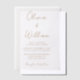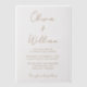 Chic Vellum Hochzeitseinladung mit minimalistischem Flair mit den Namen der Braut und des Bräutigams in einer goldenen Kalligraphie-Schrift und Ihren Hochzeitsdetails in moderner Goldschrift. Passen Sie die Größe des Skript-Schriftartes im Entwurfstool für längere oder kürzere Namen an, falls gewünscht. Pair es mit Ihrem Lieblings-Foto oder einem unserer korrespondierenden Solid- oder Fotokartenhintergründe für eine ausgeklügelte und zeitlose Kombination (siehe unsere Hintergründe für Vellum Overlay-Sammlungen oder Nachricht für die Links).
