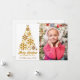 Eine schicke goldene Weihnachtskarte mit Ihrem Familienfoto neben einem schönen Baum aus goldenen Schneeflocken über frohen Weihnachten und glücklichen Neujahr. Diese trendige Fotokarte verfügt über ein Trio mit hübschen Schneeflocken auf der Rückseite für die Ferien.