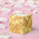 Elegante Hochzeitsgunst in einem goldenen Tonfliesen-Muster. Die Oberseite der Schachtel ist mit einer dekorativen, goldfarbenen und weißen Textplakette versehen, die mit einem schwarzen, benutzerdefinierten Text versehen ist. Kleine Geschenkboxen für Bonbons und alles, was Sie gewollt haben, um Ihren Gästen zu geben.