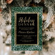 Eine moderne, schicke und elegante goldene Typografie Weihnachtsabendessen Weihnachtsfeier mit goldenem Rahmen auf elegantem Grün mit weißem Schnee und Schneeflocken.